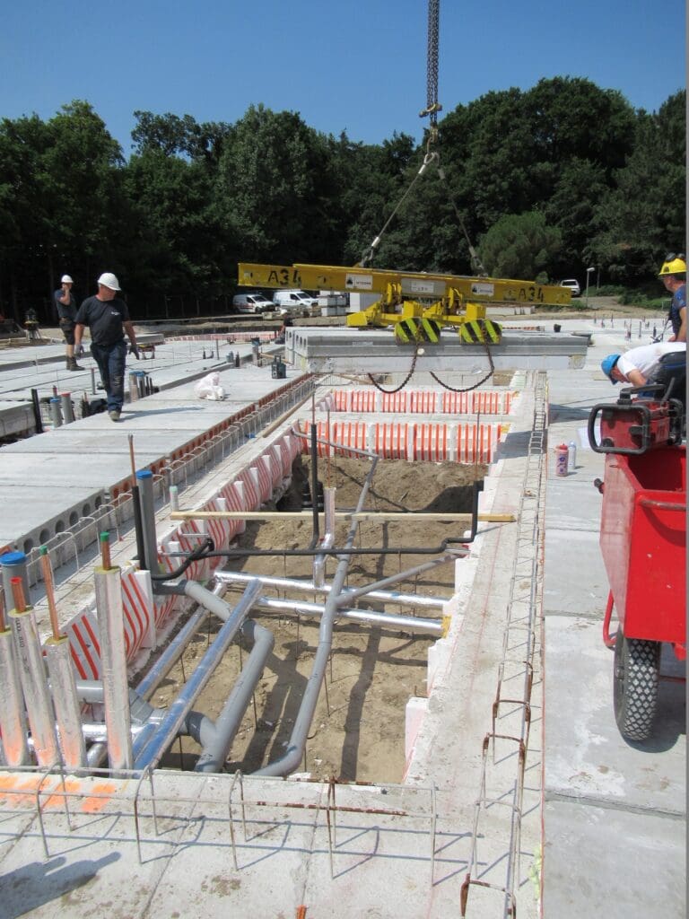 Het aanleggen van de collectieve sanitaire installaties voor 107 appartementen en algemene voorzieningen